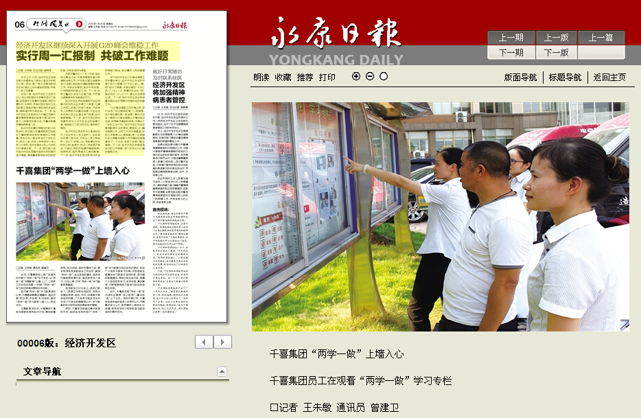 | <永康日報>:千喜集團“兩學一做”上墻入心 閱讀13096次 發布日期:2016/7/26 |