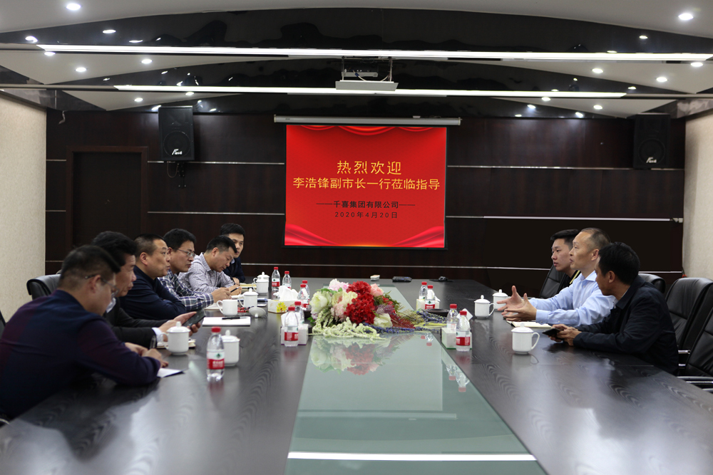 4月20日,永康市副市長李浩鋒等一行蒞臨千喜集團,在開發區黨工委書記胡文建、千喜集團董事長姚湘江的陪同下進行工作調研。
