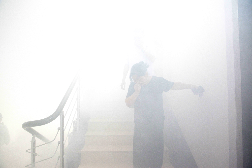 為了讓大家更切身的感受到消防安全的重要性,培訓最后還進行了逃生演練。在培訓老師的指導下,全體培訓人員手捂口、鼻,手扶墻壁依次從安全通道下樓,迅速有序地從辦公樓撤離,到達廠區(qū)廣場集合,根據(jù)所學的知識,很好的完成了這一次的模擬逃生演練。